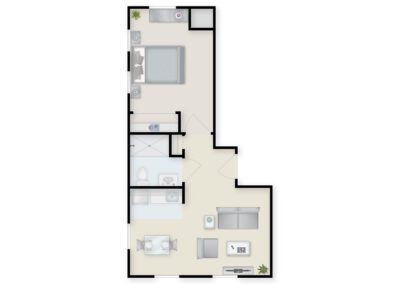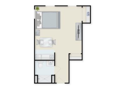 Whether you’re looking for a private studio or a companion suite, each Memory Care apartment is thoughtfully designed for convenience, safety and comfort. Along with expert care and support available 24/7, all residents enjoy their homelike apartments as well as a host of exciting community amenities! Browse our featured Memory Care floor plans below, and contact us when you’re ready to schedule a tour!